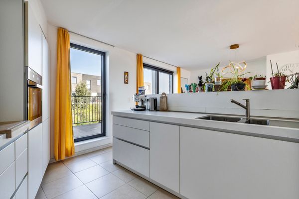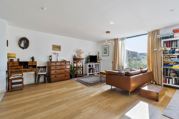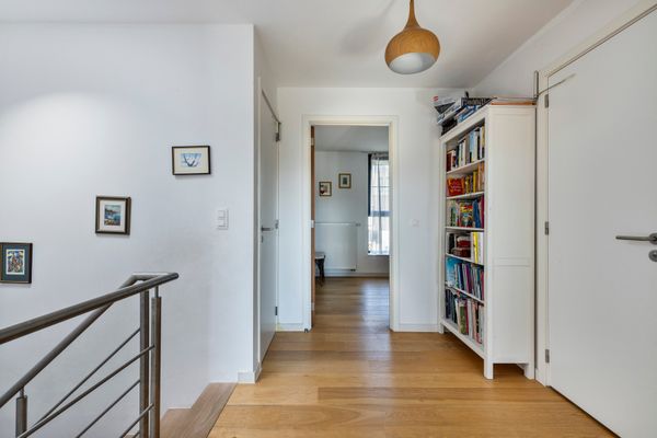 1eV: Lichtrijke leefruimte met parketvloer, Open, volledig uitgeruste keuken van het Gentse kwaliteitsmerk Bulthaup, Aangename eetplaats, zithoek én een knusse speel- of leeshoek, Twee terrassen (voor- en achteraan) – de hele dag door zon.