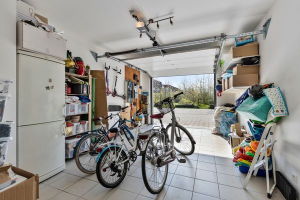 GV: Inkomhal met inbouwkast, Gastentoilet, Zeer ruime garage met automatische, elektrisch bediende poort, Douchekamer/wasplaats, Slaapkamer/bureau/hobbyruimte met toegang tot terras en tuin, Gezellige en onderhoudsvriendelijke stadstuin.