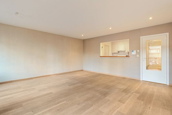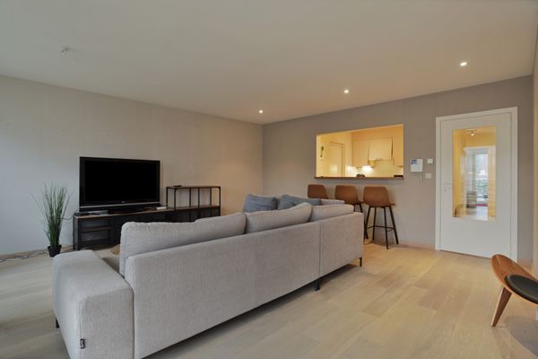 Het appartement, gelegen in een hedendaagse residentie, heeft een bewoonbare opp. van 80 m² en is als volgt ingedeeld: mooie inkom, ruime leefruimte (31 m²) met toegang tot het terras vooraan van 11 m², ingerichte keuken voorzien van oven, frigo met vriesvak, vitrokeramische kookplaat, dampkap en vaatwasser.